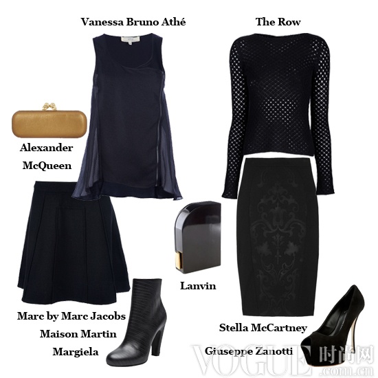 黑色是永恒的流行色,穿黑色永远不会出错,但出席活动场合黑色造型的撞色几率也相当高,想要穿好黑色,还是要有些小心机,不规则设计的透视上装和伞裙的搭配让人看起来年轻了好几岁。2012秋冬大热的宫廷元素能为黑色增添华丽感和神秘感,是点亮黑色造型的应季单品。